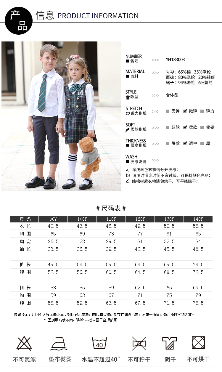 • 面料材質:西裝/西褲:80%滌綸20%粘纖 裙子:70%滌綸27%粘纖