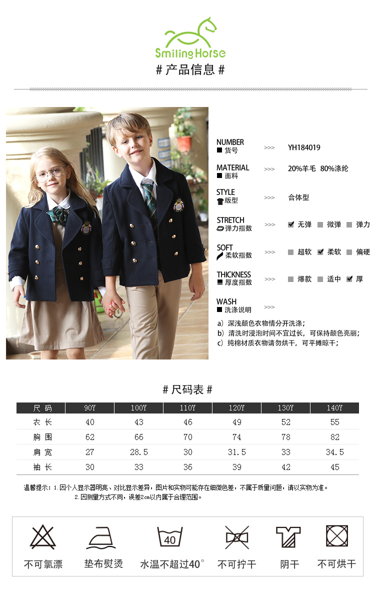 面料材質(zhì):襯衫:65%棉35%滌綸 褲子/裙子:80%滌綸20%粘纖