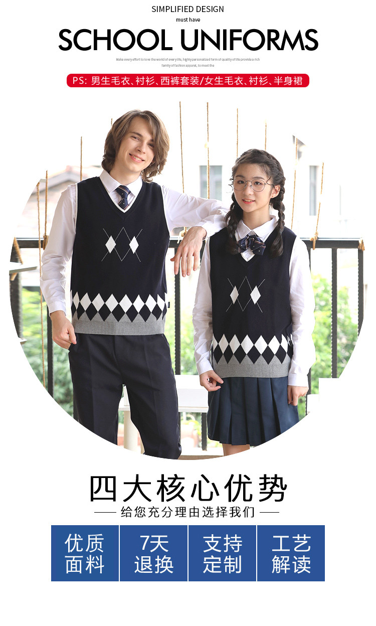 產(chǎn)品名稱:中學(xué)校服毛衣背心套裝